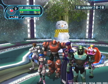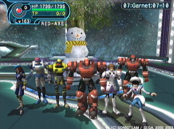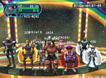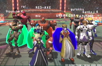 | 最近やや下火のPSO・・・ですが、我が鳳凰騎士団集会にて、16名もの参加者が集まってくれました!ロビーに入れない人がでるほどの盛況ぶりに感謝感謝!今度の集会もよろしくお願いします! |